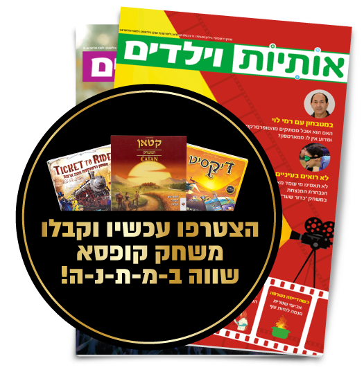 חיברנו את כל הטוב ב"אותיות" עם כל התוכן של "ילדים" והבאנו בפניכם 84 עמודים מלאים במדורים מרתקים עם הכותבים הכי משובחים שיש.
